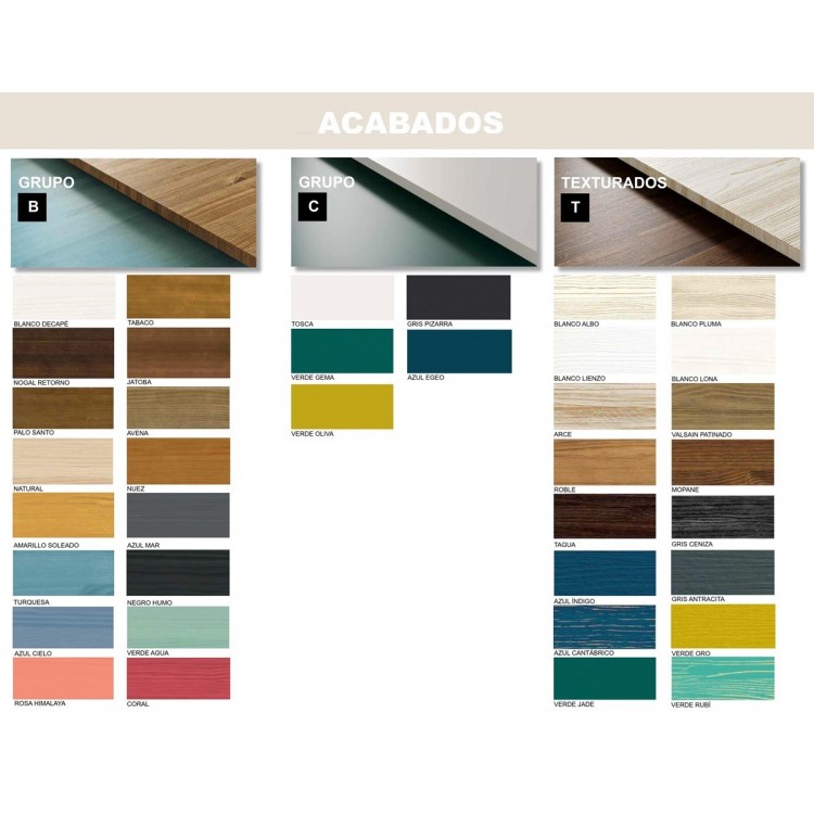 Puedes personalizar su acabado para resaltar la veta natural de la madera o adaptarlo a la paleta cromática de tu hogar.